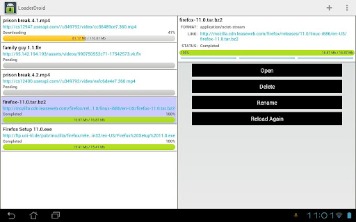Loader Droid vous permettra de télécharger en Wifi mais également en 3G (bien sûr ce sera un peu plus long). Et ce n’est pas tout, Loader Droid utilise une technologie inventive basée sur la réception en 3 flux. En fait c’est très simple, cela fonctionne un peu comme le téléchargement par paquets: on divise le téléchargement en plusieurs morceaux afin d’accélérer celui-ci et surtout cela permet également de limiter l’impact sur la bande passante. Ainsi, même en téléchargeant, Loader Droid vous permettra de continuer à surfer sur internet sans trop de problèmes.