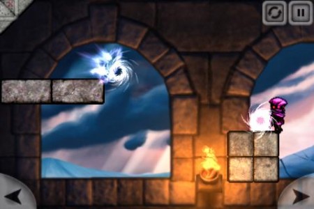 Il n’y a donc qu’un seul mode de jeu dans Magic Portals: vous devez finir un niveau en empruntant le moins de portails possibles. Mis à part cela, vous pourrez utiliser différents types de magie qui viendront vous aider dans votre tâche: bouger des pierres énormes, exploser les murs etc. Les contrôles du personnage sont extrêmement simples: une flèche à gauche, une flèche à droite pour vous déplacer, et un appui sur l’emplacement où vous désirez créer un portail.
