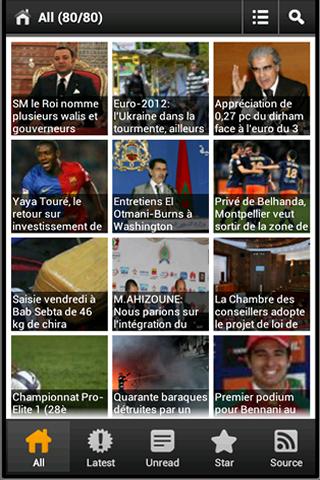 Cette application vous offre donc la possibilité d’accéder à un très grand nombre de nouvelles et d’articles en provenance des plus grands journaux marocains. Ce sont actuellement plus de 25 sources qui sont disponibles dans 7 catégories (A la Une, politique, économie, international, sports, société et culture).