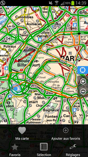 Les principales agglomérations y sont assez détaillées ainsi que la plupart des autoroutes. Un système de couleur vous permettra devoir clairement les différents ralentissements qui se forment sur votre parcours.