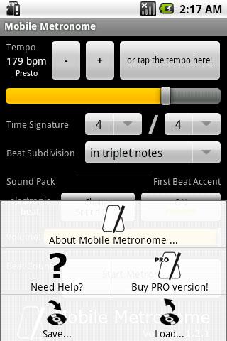 Mobile Metronome est donc un métronome de poche qui vous permettra de garder ou de retrouver le tempo. Vous apprécierez de pouvoir ajuster facilement le tempo de 10 à 230 bpm. Il vous sera également possible de taper votre tempo afin de retrouver une chanson.