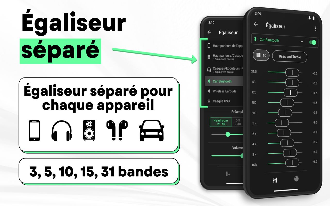 - Égaliseur séparé, thèmes clair/sombre, widgets pour personnaliser l’expérience selon vos préférences.