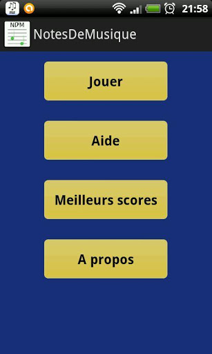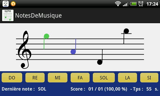 L’objet de cette application est de permettre aux plus jeunes de se mettre au solfège, d’apprendre les notes tout en s’amusant. Afin de stimuler l’élève, NotesDeMusique propose au joueur trois modes de jeu: Un mode entraînement, un jeu chronométré où vous devrez trouver le maximum de notes en une minute et un mode Survie où vous devrez faire le plus gros score sans aucune erreur.