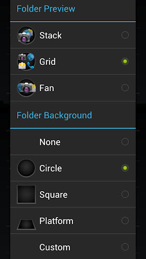 Nova Launcher vous propose également de changer l’affichage des dossiers ainsi que le contenu de ceux-ci: vous pourrez empiler les icônes ou les faire défiler de gauche à droite par exemple. Il vous sera même possible de supprimer entièrement l’arrière plan.