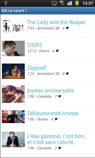 Avec l’application « Oh Ce Court », vous pourrez découvrir depuis votre smartphone Android de nombreux courts métrages. L’application en répertorie déjà plus de 150 en français. Parfait pour s’occuper en attendant le bus, le train, ou tout simplement pour passer le temps…