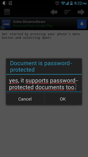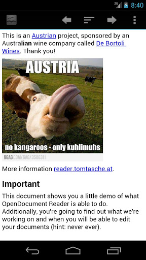 Le point fort d’OpenDocument Reader ? Sa simplicité. Son autre point fort ? Sa rapidité. Encore un autre ? Sa légereté. OpenDocument Reader est en effet une application très légère, particulièrement véloce et toute simple à utiliser. C’est bien simple, une fois installée, vous n’aurez rien à faire de plus.