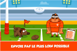 Lancée en pleine Coupe du monde 2011, l’application Paf le chien Rugby reprend le même principe que son illustre prédécesseur (voir notre article ici). Vous devrez donc donner un coup de pied dans l’arrière-train de Paf pour l’envoyer le plus loin possible. Pour ce faire, vous allez devoir choisir un angle de tir puis regarder le chien prendre son envol. Des éléments (placés de manière aléatoire) se trouvent sur la route de Paf et lui permettra de rebondir et de repartir vers les cieux. En effet, les rugbymen le font rebondir et repartir de plus belle, à condition de tomber sur leur tête, sinon ils vous stoppent illico