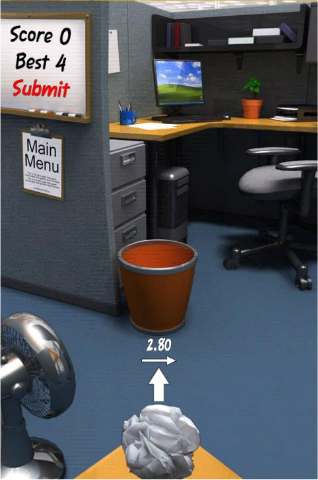 Impossible de se passer de Paper Toss. Régulièrement cité comme l’un des jeux les plus téléchargés, ce carton planétaire vous propose de jouer avec une boule de papier, qu’il faudra diriger vers une corbeille en fonction du vent produit par un ventilateur.