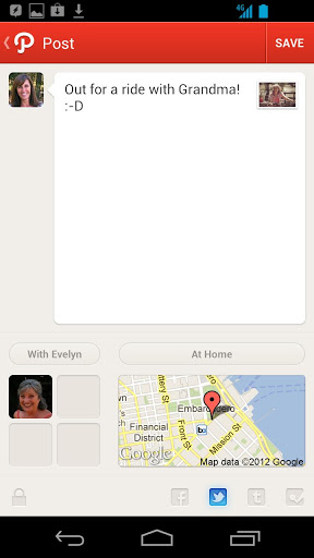 - Une tape pour une publication croisée vers Facebook, Twitter, Tumblr et Foursquare directement depuis Path.