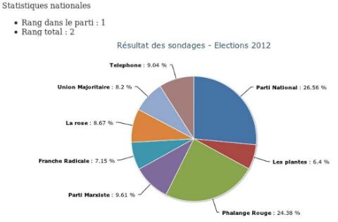 Au fur et à mesure du jeu, vous pourrez voir les statistiques nationales, basées sur les points des joueurs, et ainsi savoir comment se situe votre parti par rapport aux autres.