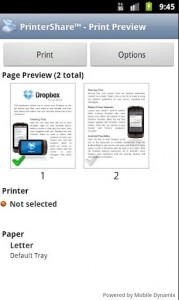 Vous pourrez ensuite lancer des impressions directes sur des imprimantes se trouvant à proximité, via le Wi-Fi ou le Bluetooth, et ceci sans ordinateur. L’application fonctionne également sur les imprimantes partagées d’un PC ou d’un Mac. Il vous sera également possible d’imprimer à distance via le serveur PrinterShare.