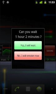 Et lorsqu’une envie survient, le réflexe sera de sortir votre Smartphone et d’aller voir depuis combien de temps vous n’avez pas fumé. À vous d’avoir la volonté de cliquer sur « Yes, I will wait », bref pour continuer comme cela, plutôt que sur non et de craquer.