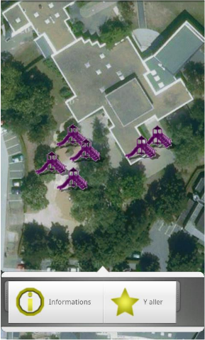 Au niveau de l’affichage de la carte, vous pourrez opter pour un mode satellite et l’affichage ou non des rues. Cette application a été réalisée dans le cadre du Concours Rennes Métropole en « accès libre ».