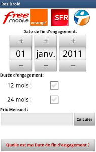 Je vous présentais hier sous forme d’un petit tutoriel dans notre rubrique actualités, comment connaitre le coût de résiliation de votre abonnement mobile. Le 1er février devait être la journée « des grands esprits », car paraissait également une application sur le Market : ResiDroid. Sur le fond la méthode est la même, mais vous n’irez pas sur des sites extérieurs.