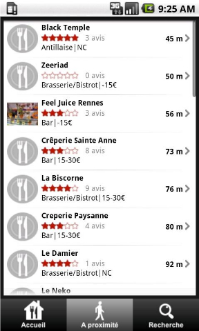 • La liste des restaurants les plus proches du lieu où vous vous trouvez