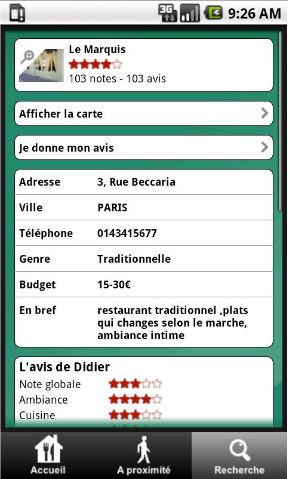 • La possibilité de donner votre avis sitôt votre repas terminé : cuisine, décoration, ambiance, service, prix… Faites connaître votre opinion, et profitez de celle des autres.