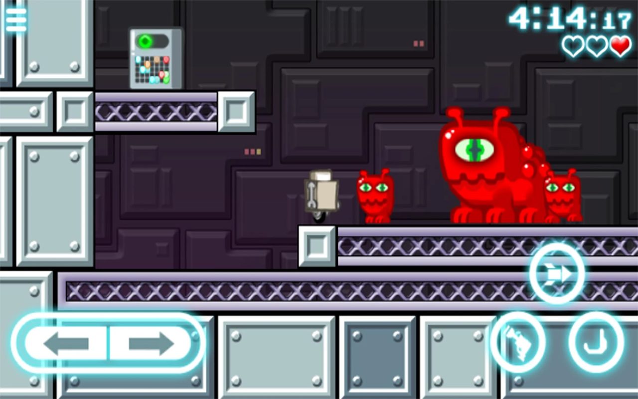 Le gameplay de ce jeu de plateforme de type metroidvania sur Android suit une structure classique du genre. Tu incarnes un petit robot dont le cœur d’acier a besoin de chaleur et de compagnie. Son objectif ? Sauver un adorable chaton prisonnier dans une cellule au sein d’un vaisseau spatial alien. Au début de chaque niveau, ton robot ne peut que se déplacer de gauche à droite. Mais en explorant minutieusement, tu découvres des power-ups cachés qui lui accordent de nouvelles capacités : saut, double saut, tir laser, dash rockets pour traverser des rivières toxiques, et bien d’autres. Chaque nouvelle compétence débloque des zones précédemment inaccessibles, encourageant le backtracking typique des metroidvanias.