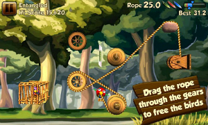 Le but du jeu est d’enrouler une corde autour d’engrenages afin de faire libérer les oisillons enfermés dans des cages. Et dans les histoires d’engrenages, on sait quand on commence, mais on sait rarement quand on finit ! Attention toutefois aux pièges qui vous seront tendus et en particulier au feu et aux couteaux qui vous empêcheront d’œuvrer correctement.