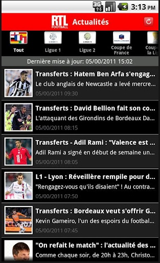Toutes les compétitions françaises et européennes majeures sont présentes (Ligue 1, Ligue 2, Coupe de France, Coupe de la ligue, Ligue des chamions et Europa League). Vous pourrez suivre l’équipe de France et les éliminatoires de l’Euro 2012 mais également les championnats anglais, espagnol, allemand et italien.