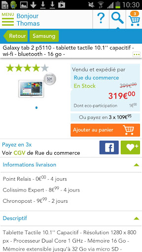 Bien entendu, vous pourrez effectuer des achats depuis l’application et visualiser le contenu entier du site. Il vous sera même possible de suivre les étapes de livraison. Si vous n’êtes pas convaincu par un produit alors mettez le de côté pour le garder sous la main et revenir y jeter un coup d’oeil à tête reposée. En somme vous aurez toutes les fonctionnalités du site Rue du Commerce dans une petite application bien plus ergonomique.