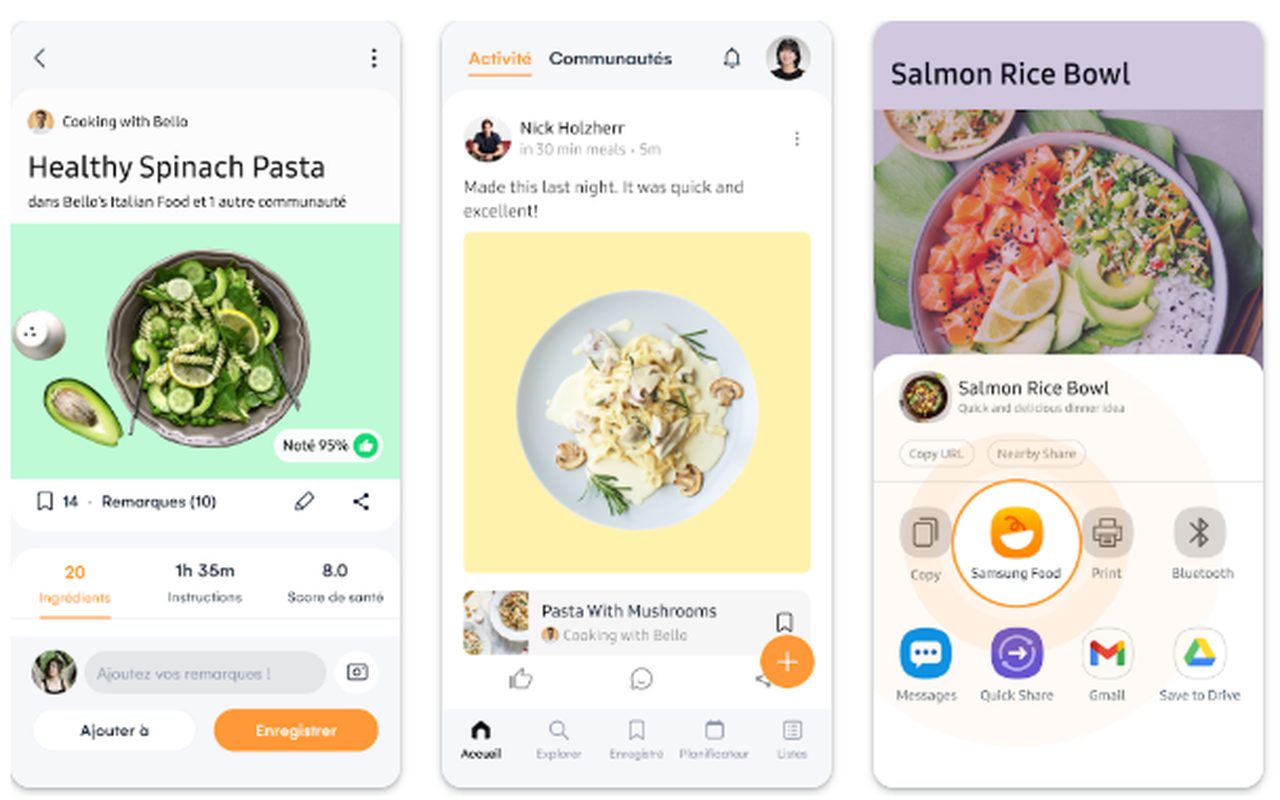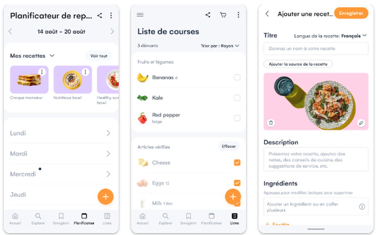 Samsung Food brille par cette capacité de planifier vos repas sur Android. L’application analyse vos préférences, vos habitudes alimentaires et vos restrictions diététiques pour suggérer automatiquement des menus équilibrés et variés. Cette intelligence artificielle apprend progressivement de vos choix pour affiner constamment ses recommandations et vous proposer des recettes correspondant réellement à vos goûts. La génération automatique de listes de courses constitue un gain de temps considérable : sélectionnez simplement vos recettes de la semaine, et l’application compile intelligemment tous les ingrédients nécessaires, éliminant les doublons et organisant votre liste par catégories pour faciliter vos achats en magasin. Les communautés thématiques rassemblent des passionnés autour d’intérêts communs (cuisine végétarienne, pâtisserie, cuisine asiatique), favorisant les échanges et la découverte de nouvelles saveurs.