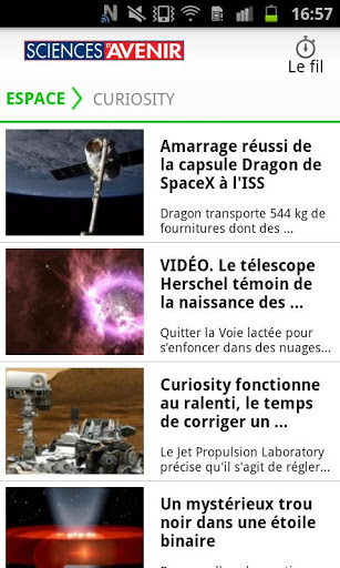 Sciences et avenir est la référence de l’actualité scientifique est donc enfin disponible sur mobile et tablette Android. On retrouve de nombreux articles classés par thématiques pour suivre en direct les dernières découvertes scientifiques, les avancées de la recherche, l’actualité de l’exploration spatiale, de l’astronomie, des nouvelles technologies, des questions d’environnement et de santé…