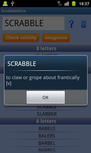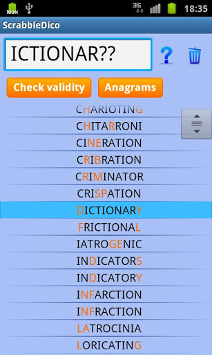 - Solveur d’anagrammes super-rapide, grâce à sa base de mots intégrée et à son moteur de recherche optimisé: générer 1000 anagrammes à partir de 7 lettres + 1 JOKER prend moins de 3 secondes sur un Samsung Galaxy S