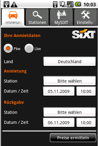 L’allemand Sixt est le principal réseau de location automobile à avoir réalisé une application Android. Ce loueur propose même un tarif spécial Android pour faire connaître ce nouveau moyen de réservation.
