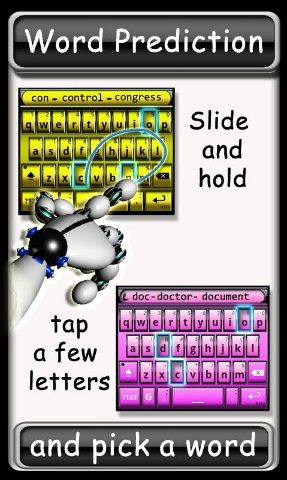 Le principe de SlidelT Clavier est que vous n’êtes pas obligé de taper chaque lettre en levant le doigt. Il vous suffit de le faire glisser sur le clavier pour voir apparaitre des propositions de mots que vous validez ou non. Vous pouvez maintenant écrire un texte d’une seule main et d’un seul doigt.