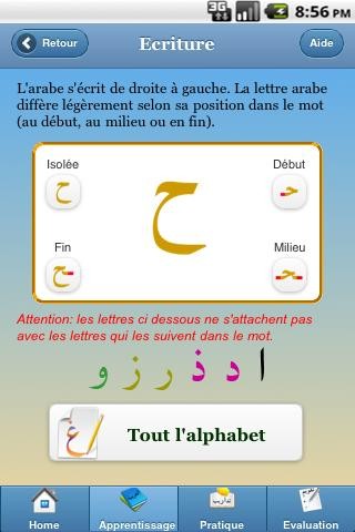 Apprenez l’arabe grâce à cette application Sm@rt Arabic. Que vous soyez débutant, que vous ayez déjà des notions, cette application saura vous satisfaire et vous y trouverez votre niveau. Dans un monde ouvert aux autres grâce à toutes les nouvelles technologies, il est important de pouvoir communiquer plus facilement. Peu d’applications du genre existent.