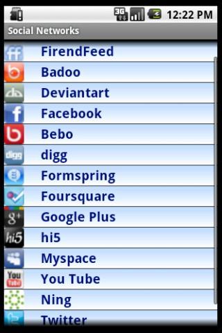 Facebook, twitter, Foursquare, Google+, Badoo sont quelques uns de ces sites qui sont réunis dans cette application. Nous en avons dénombré près de 16. Vous pourrez donc aisément retrouver les réseaux sociaux que vous aimez.