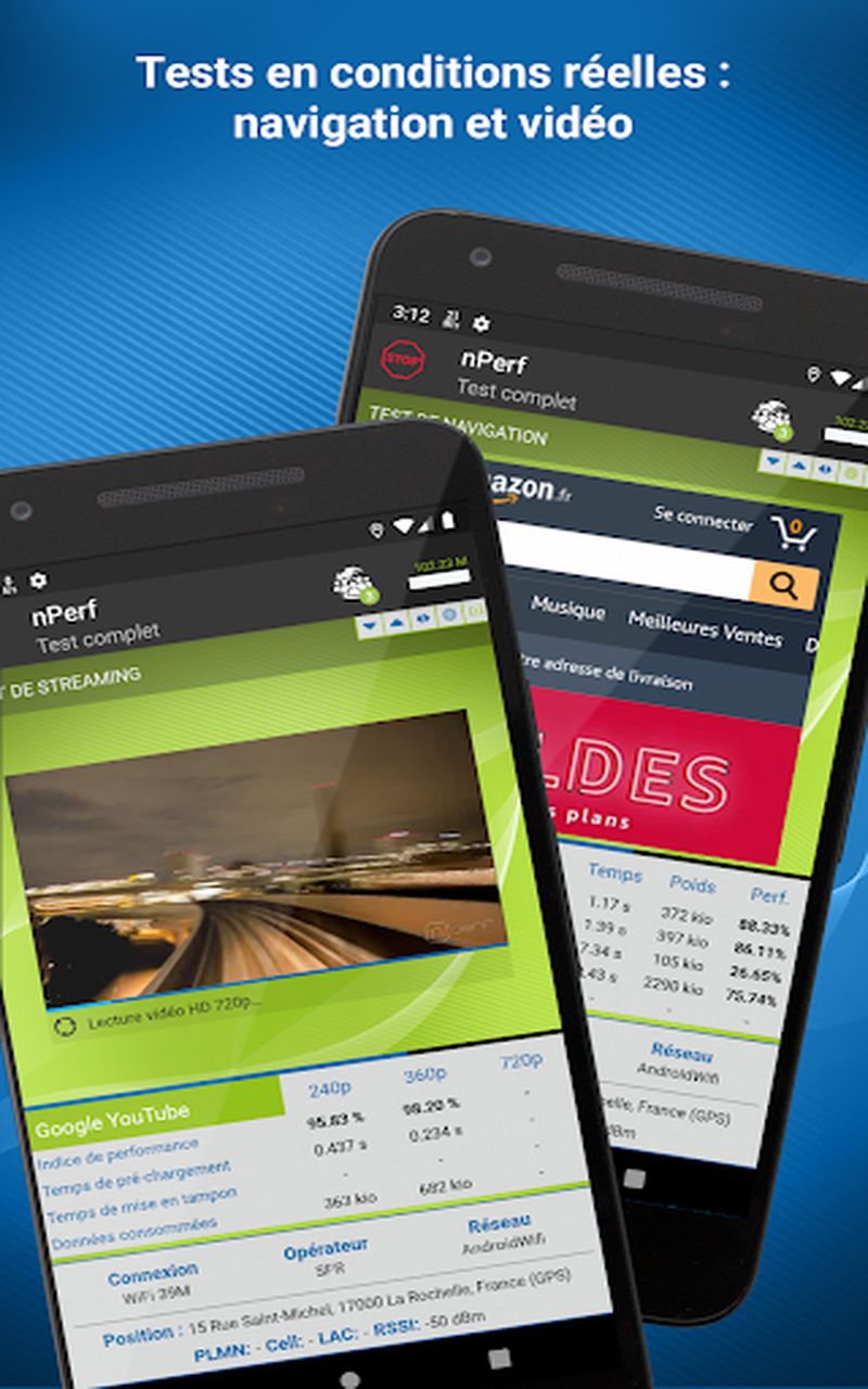 Proposée par les studios nPerf, il s’agit sans doute là de ce qui se fait de mieux sur mobile. Elle vous permettra de mesurer la vitesse de connexion que vous avez en 3G/4G et bientôt 5G mais aussi et surtout la vitesse de connexion de votre wifi local (ou public selon où vous êtes connecté). Le tout sera mesuré grâce à une batterie de tests. Ainsi, votre connexion sera testée dans plusieurs configurations, comme la lecture de vidéo, le téléchargement de fichiers en ligne, le chargement des pages internet etc.