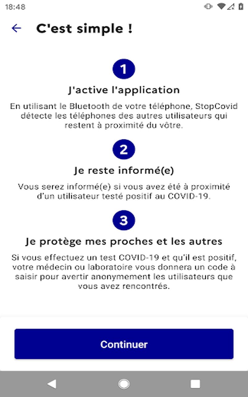 L’application propose donc aux utilisateurs de s’enregistrer et l’activer pour qu’elle fonctionne. Ensuite vous devez toujours laisser le bluetooth activé pour que vos interactions soient enregistrées. En fait, lorsque vous êtes en contact prolongé avec une personne alors l’application enregistre ce contact. Par la suite, si l’une des deux personnes est déclarée positive au Covid19, alors l’historique de cette interaction permettra au gouvernement de signaler à l’autre personne qu’elle est possiblement porteuse du virus et qu’elle doit se rendre chez un médecin.