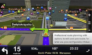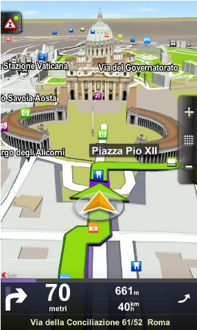 Sygic Aura est l’application professionnelle de navigation routière pas à pas qui change tout. Sygic donne l’impression d’évoluer dans une ville de dessin animé avec la modélisation en 3D d’une vingtaine de villes. Avec cette application, ce qui est le plus impressionant, c’est de partir d’une carte à plat et de la faire évoluer en 3D en agrandissant l’image! Vous avez ainsi la possibilité de choisir votre mode de circulation: piéton ou voiture.