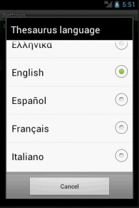 La langue du dictionnaire peut-être modifiée en allant dans les paramètres de l’application. C’est simple et vraiment efficace. Rentrez le mot recherché: nom commun, adverbe, verbe, adjectif… Vous trouverez immédiatement une liste complète de synonymes.