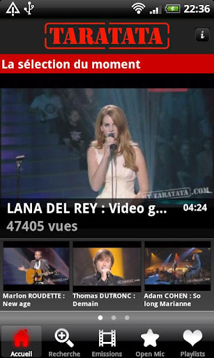 Voici l’application officielle de l’émission musicale Taratata et présentée par Nagui. Retrouvez la totalité des émissions et l’intégralité des vidéos de Taratata ainsi que des vidéos « Open Mic ».