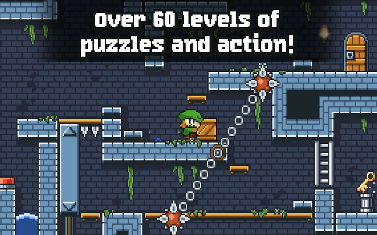 Le style graphique est plutôt sympa. Tout en pixel avec un level design résolument rétro et une difficulté également. Jouer sur mobile n’est jamais une chose aisée, il faut donc préférer mettre une petite manette bluetooth qui va bien pour être plus à l’aise avec les contrôles. On pense notamment à certains passages avec des chaînes ou des pics et où il faut sauter: c’est compliqué avec des touches mobiles. En tout, aujourd’hui il faut compter une petite centaine de niveaux. Si vous aimez les jeux de plateforme, alors vous allez forcément aimer celui-là. Tiens, d’ailleurs je vous propose de découvrir un lien vers les solutions du jeu, cela vous permettra d’avancer si vous êtes bloqué.