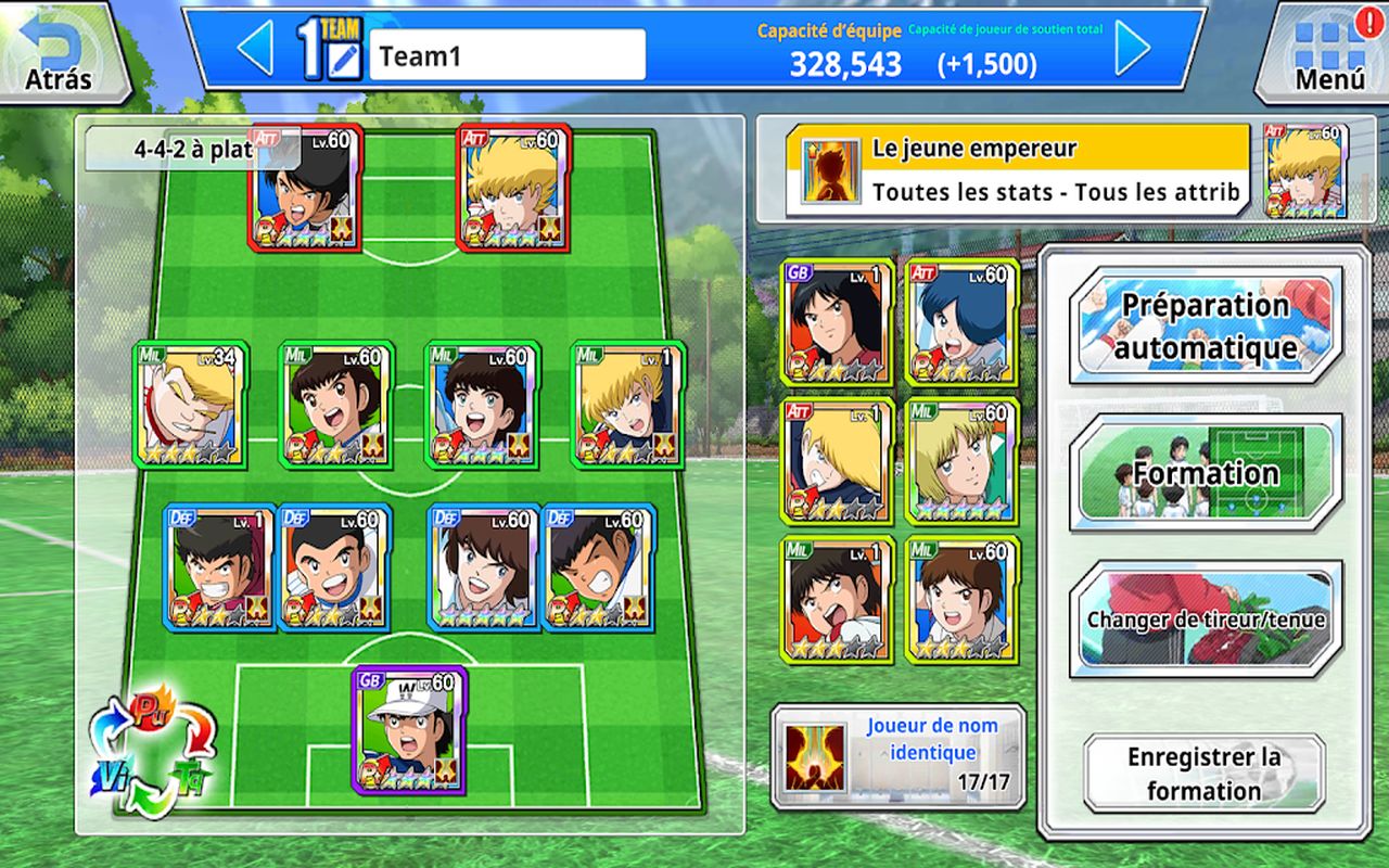 En fait ce Captain Tsubasa ZERO Miracle Shot pourrait s’apparenter à une version plus arcade du titre précédent et s’adresserait aussi aux fans mais surtout aux joueurs qui ne veulent pas se prendre la tête. Les affrontements sont plus simples, les possibilités de chaque joueurs sont réduites (en tous cas au départ) et le tout se déroule très rapidement. Vous allez construire une équipe avec des personnages issus du dessin animé, et vous allez pouvoir améliorer leurs capacités. Vous pourrez gérer la formation, la tactique de votre équipe mais aussi tout laisser faire de façon automatique avec la « préparation automatique« .