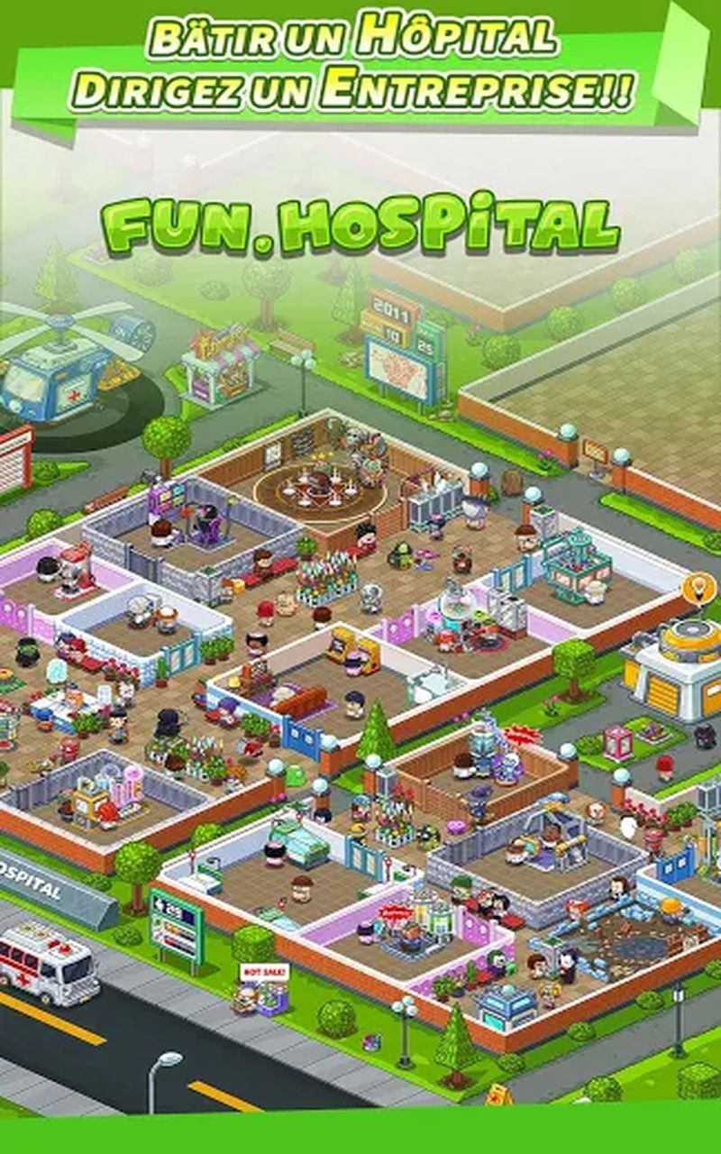 Bonjour à tous et bienvenue sur nos pages pour y découvrir sans plus attendre la présentation et le test complet du jeu Fun Hospital. Disponible gratuitement sur Android via le Play store, il est proposé par les studios OrangesGames Technology Limited (un poil long les gars non ?) et il est classé dans la catégorie « simulation », car c’est un jeu de gestion.