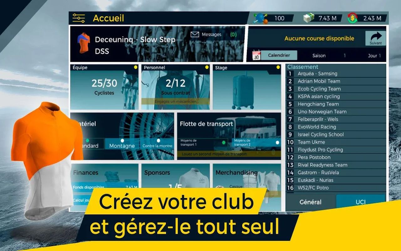 Dans ce jeu vous êtes à la base de votre expérience. Autrement dit vous allez créer une nouvelle équipe de cyclisme et recruter les différents coureurs, gérer les sponsors, les inscriptions aux courses etc. Mais ce n’est pas tout, vous allez aussi devoir engager et choisir vos équipes médicales pour gérer les blessures et bien entendu contrôler vos finances. Bref vous avez du pain sur la planche.
