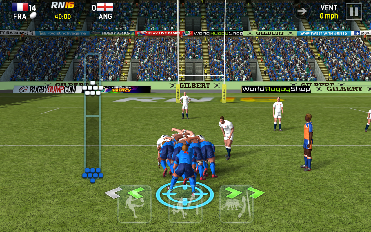Graphiquement, Rugby Nations 16 est tout à fait honnête, sans atteindre des sommets. Le jeu est coloré, les joueurs correctement modélisé (même si on n’en reconnait aucun), bref on a vraiment l’impression de participer à un match de rugby sur son téléphone (ou sa tablette). De plus les commandes ont été entièrement pensées pour le tactile avec des choix clairs s’affichant sur l’écran lorsque plusieurs options de jeu s’offrent à vous: taper au pied, passez au large etc.
