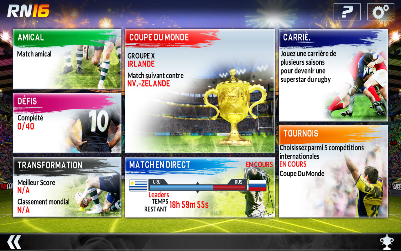 Bonjour à tous et bienvenue sur nos pages pour y découvrir aujourd’hui la présentation et le test complet d’un tout nouveau jeu disponible sur Android: Rugby Nations 16. Et oui, en pleine Coupe du Monde de Rugby, l’équipe d’Android-Zone.fr ne pouvait pas passer à côté de ce jeu. Après vous avoir présenté l’application officielle de la Coupe du Monde Rugby 2015 pour suivre tous les résultats, voici maintenant un jeu pour patienter entre les matchs !