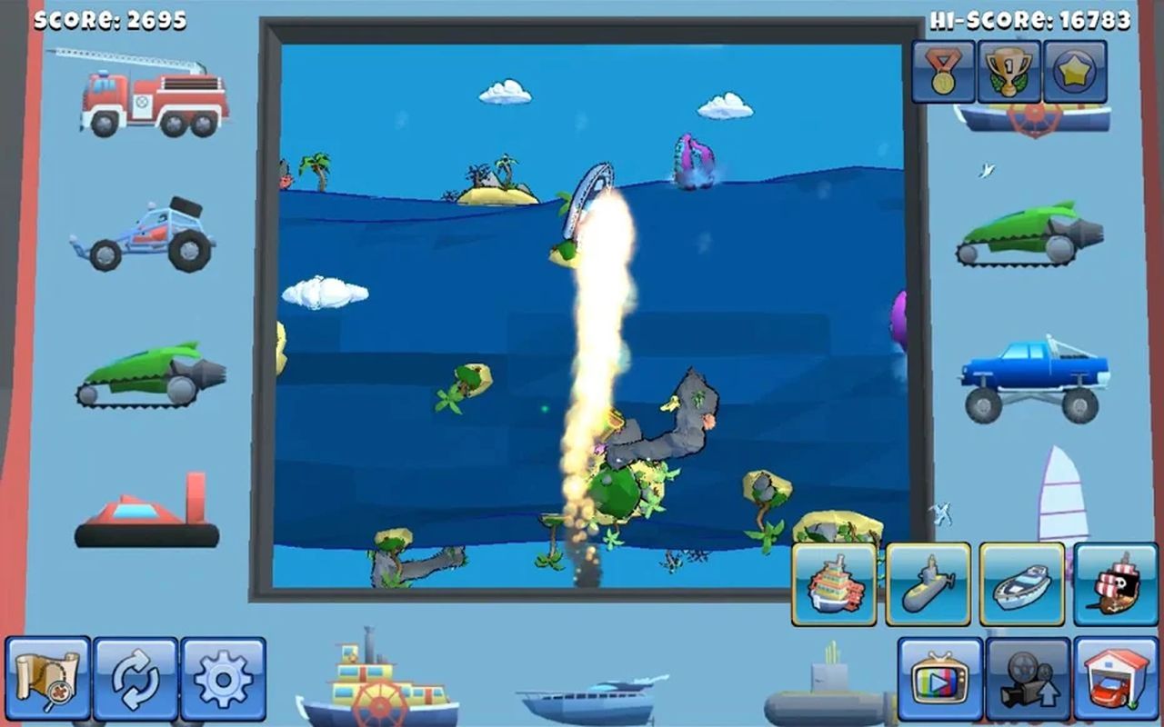 Lorsque vous démarrez une partie de Wheely World, ce qui saute aux yeux, c’est la réalisation du titre. On se croirait revenu à la mode du « cell shading », c’est à dire des graphismes en 3D mais dont on dirait qu’ils ont été dessinés à la main. l’effet est plutôt cool, si on aime le genre, et ça donne un petit côté rétro sympathique. Ensuite on choisit son véhicule en fonction de la course et c’est parti !