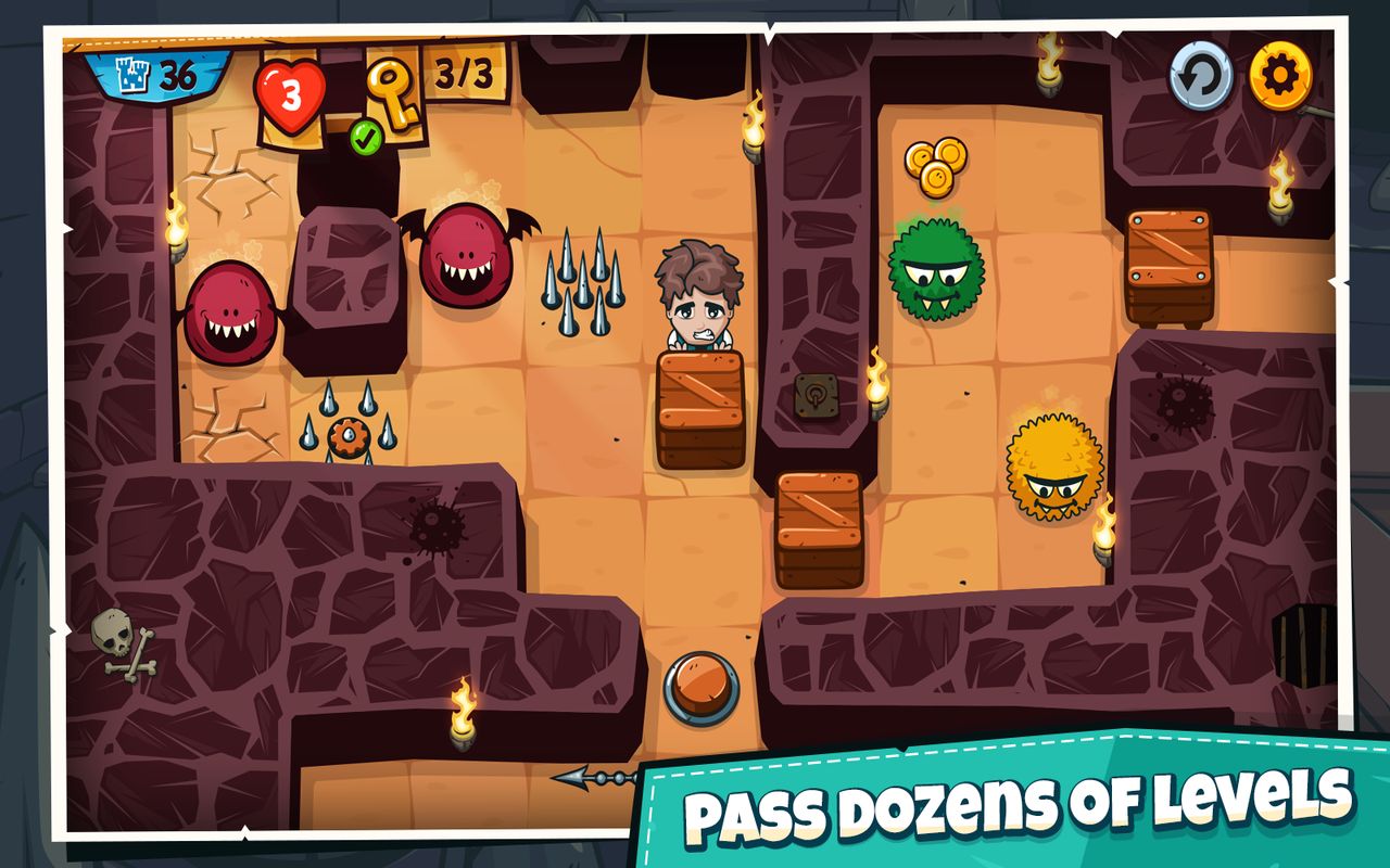 Lorsque vous réussirez à délivrez la princesse du donjon ennemi, vous gagnerez de l’argent. Dans Maze Bandit, vous utiliserez cet argent pour mettre à jour votre donjon et vos pièges. Votre objectif: en faire une forteresse imprenable grâce à tous les pièges et les différentes constructions à utiliser.