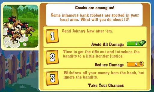 Le jeu est assez profond et même s’il reprend sans innover des mécaniques de jeu bien huilées; il permet une certaine personnalisation de sa ville (en achetant des objets par exemple) qui lui donne une identité propre et qui permet au joueur d’avoir la sensation de pouvoir créer une ville vraiment unique. Ensuite il fourmille de petites idées qui renforcent l’univers du grand Ouest Américain: attaques de bisons, ouragans, mini jeux de pêches etc.