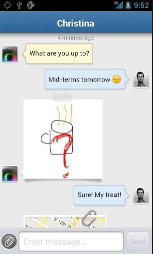 Une fonction plutôt originale proposée par ce nouveau service consiste par exemple à envoyer, lors de vos échanges, des « Crokis » en temps réel. Ces crokis sont en fait des dessins et il vous sera ainsi possible de proposer par exemple un plan d’accès pour un rendez-vous convenu avec vos interlocuteurs. Lorsqu’ils souhaiteront eux aussi vous envoyer un Crokis, vous les verrez dessiner en temps réel, Pratique pour faire un morpion par exemple!