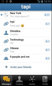 Discuter avec vos amis, c’est bien, mais vous aimerez peut-être papoter avec de nouvelles personnes? Topi vous permet de le faire de plusieurs manières: directement en regardant qui est autour de vous via la géolocalisation, en discutant dans le chat local, ou si vous remplissez votre profil et laissez Topi faire, vous aurez même accès à des groupes suggérés. Vous choisissez bien évidemment de les joindre ou pas.