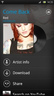 Vous pourrez ensuite écouter un extrait du titre, visualiser la pochette et des informations sur l’artiste (accéder à la biographie des artistes), puis télécharger le morceau. L’application vous propose également de voir des clips vidéo sur YouTube. Vous pourrez également partager les morceaux téléchargés que vous appréciez via FaceBook (Appuyez sur J’aime : elle apparaît instantanément sur votre mur Facebook).