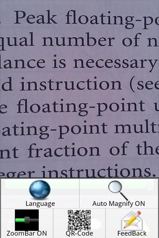 … vous devez posséder cette application surtout qu’elle ne vous coutera pas chère puisque gratuite. Donc vous l’avez compris, cette application vous permettra de transformer votre téléphone en une véritable loupe en utilisant son APN. Le développeur recommande de garder une distance minimale de 10 cm entre le texte à lire et l’appareil.