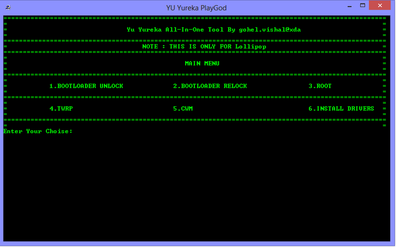 - Installer les drivers de votre Yureka en choisissant l’option 6.